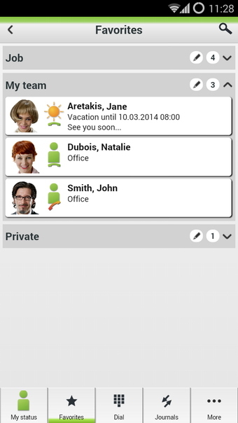이 앱은 편리한 다이얼링뿐만 아니라 하나의 번호 서비스를 포함하여 다른 다양한 UC 관련 기능에 액세스할 수 있습니다. 이 앱은 즐겨찾기, 디렉터리, 저널, 상태 표시, 음성 메일 액세스 등 많은 기능을 제공합니다. myPortal to go를 사용하면 사용자는 이동 중에도 동료와 고객과 연결된 상태를 유지할 수 있습니다. 이 앱은 사용하기 쉽고 깔끔한 인터페이스를 가지고 있어, Android 기기에서 신뢰할 수 있는 통합 통신 앱을 찾고 있는 모든 사람에게 좋은 선택입니다.